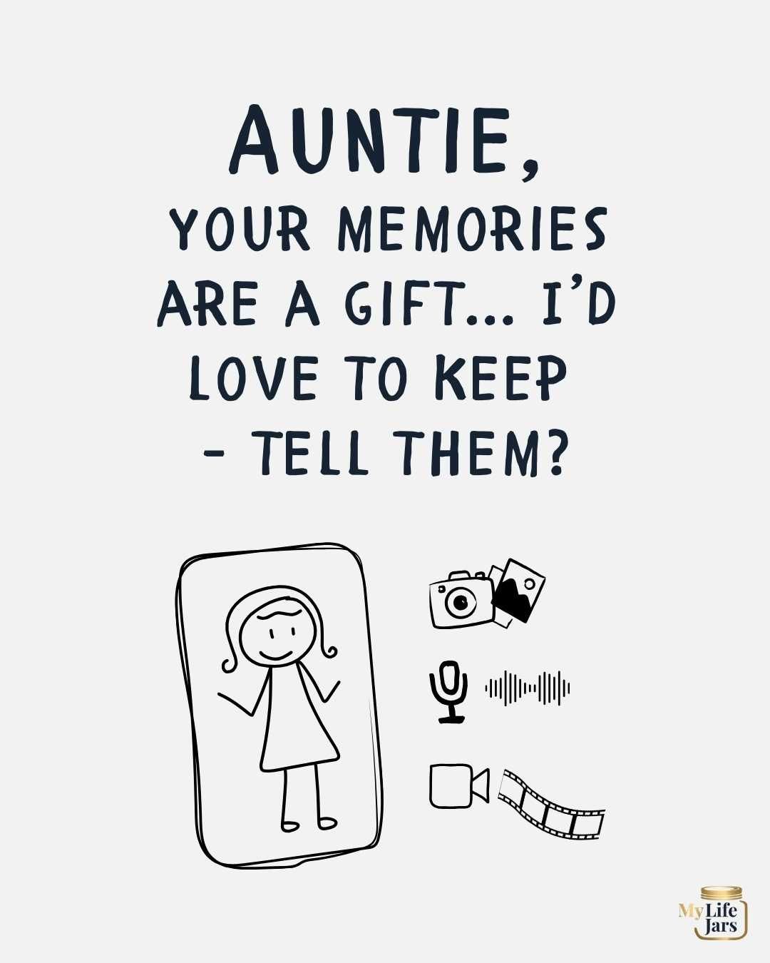 Receive inspiring memory prompts, questions and resources delivered weekly for a year to help you craft a rich, life story, complete with photos, voice notes & video clips.