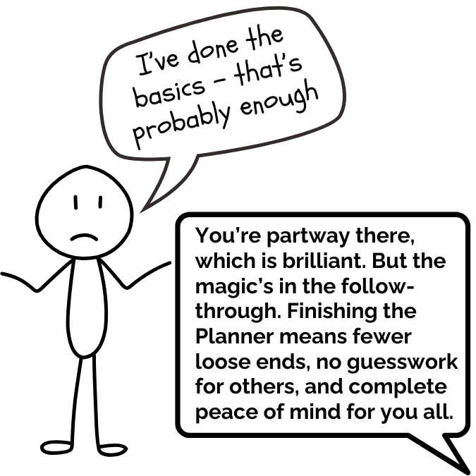 The Life Ready Planner helps you pull together the most important records – practical and personal. It will guide you to organise: