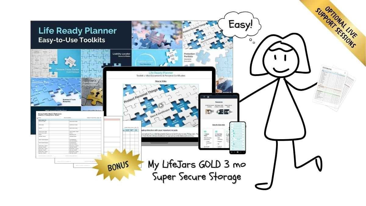 In some cases - such as your Will or Power of Attorney - the original, signed physical document is required for legal purposes. Keeping that safely filed in your Life Ready Planner, while also having a scanned copy stored in My LifeJars, means you’re covered both for legal compliance and quick access.
