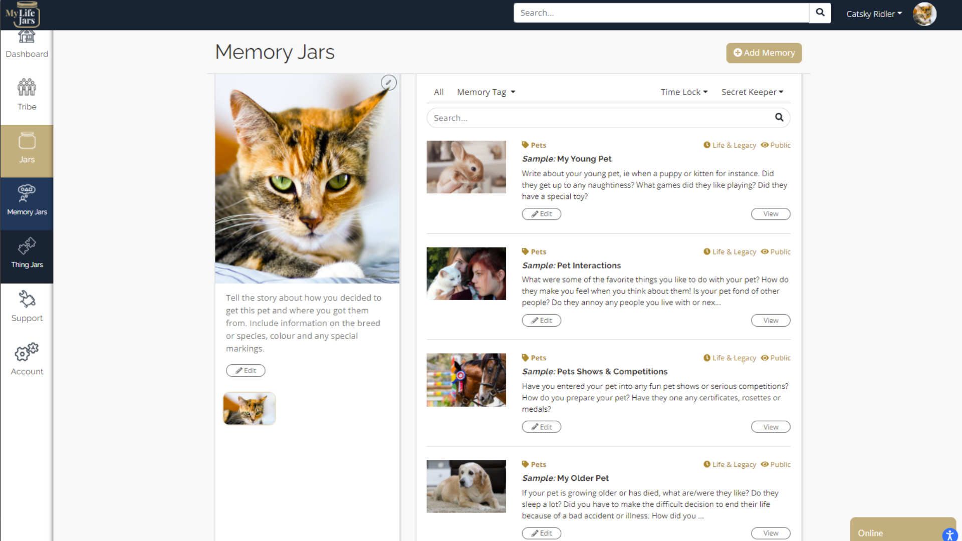 Guided by My LifeJars creator Suke, you can create a dynamic online profile for your pet which becomes their legacy...